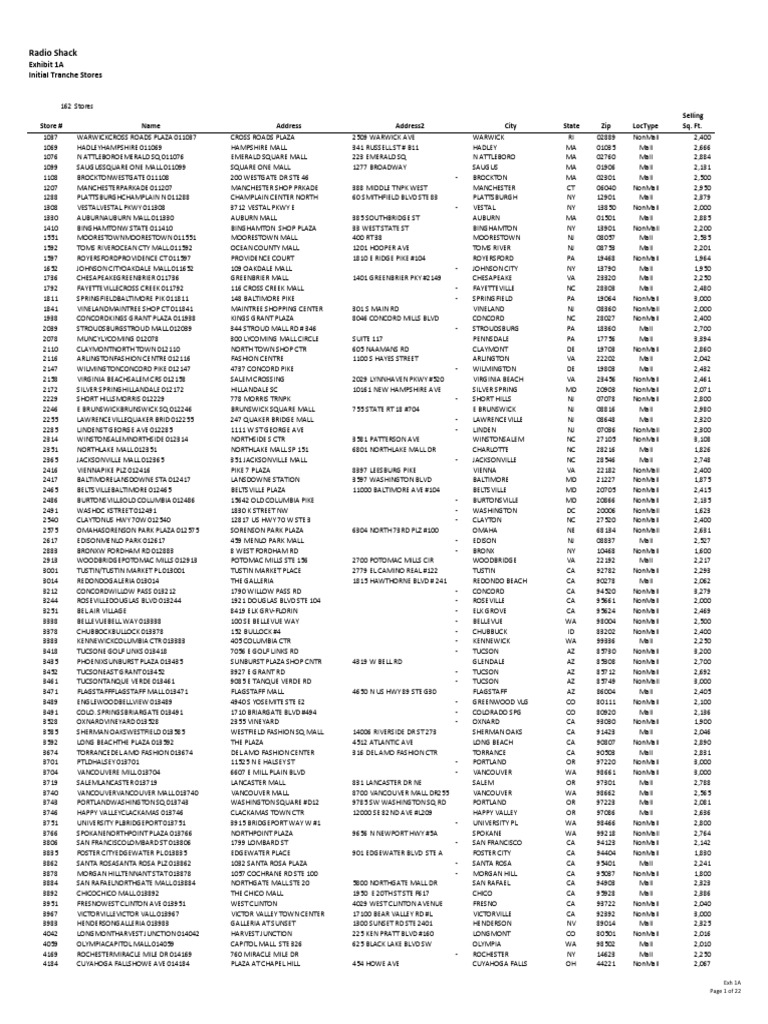 Description : RadioShack store closures